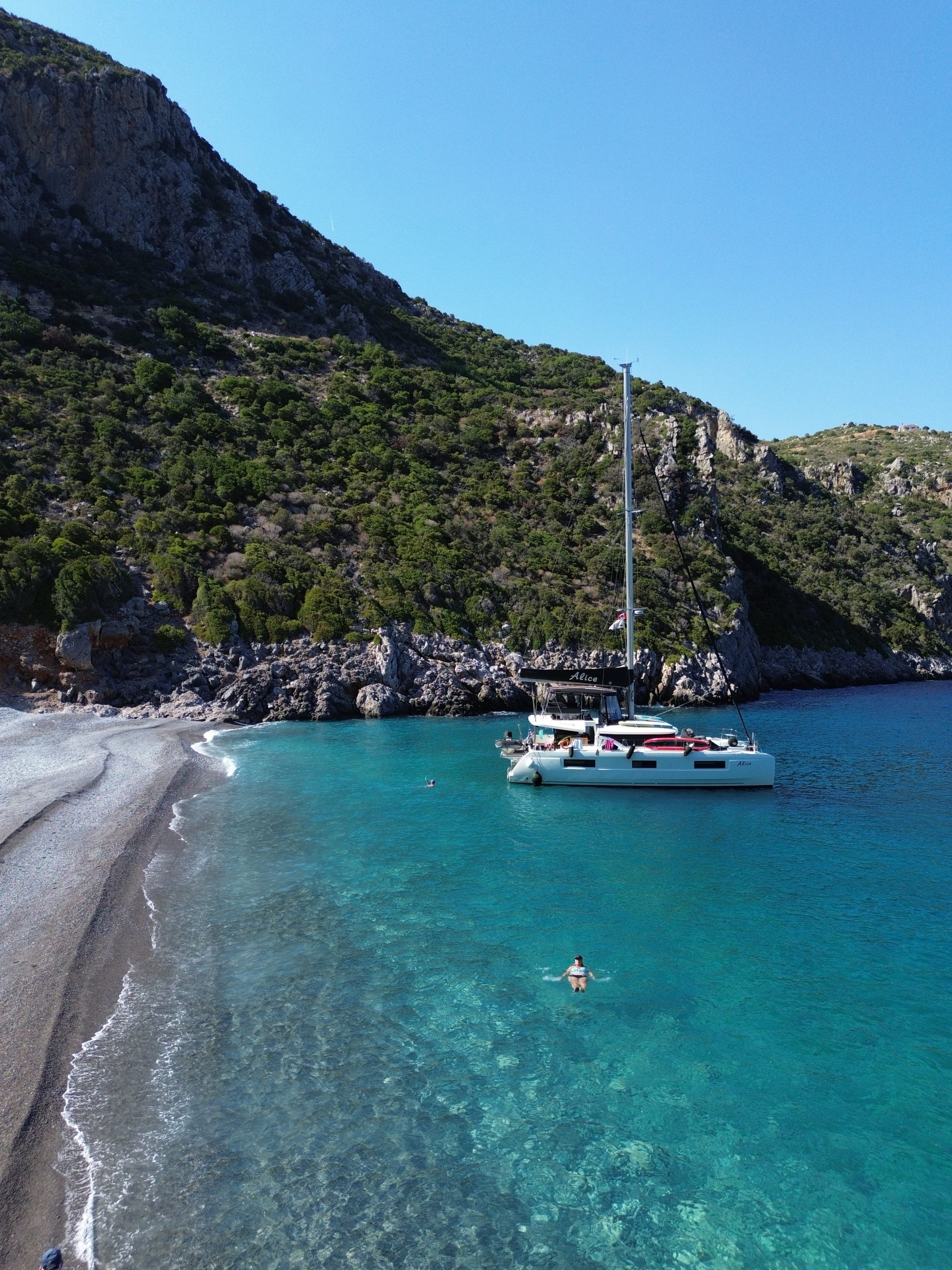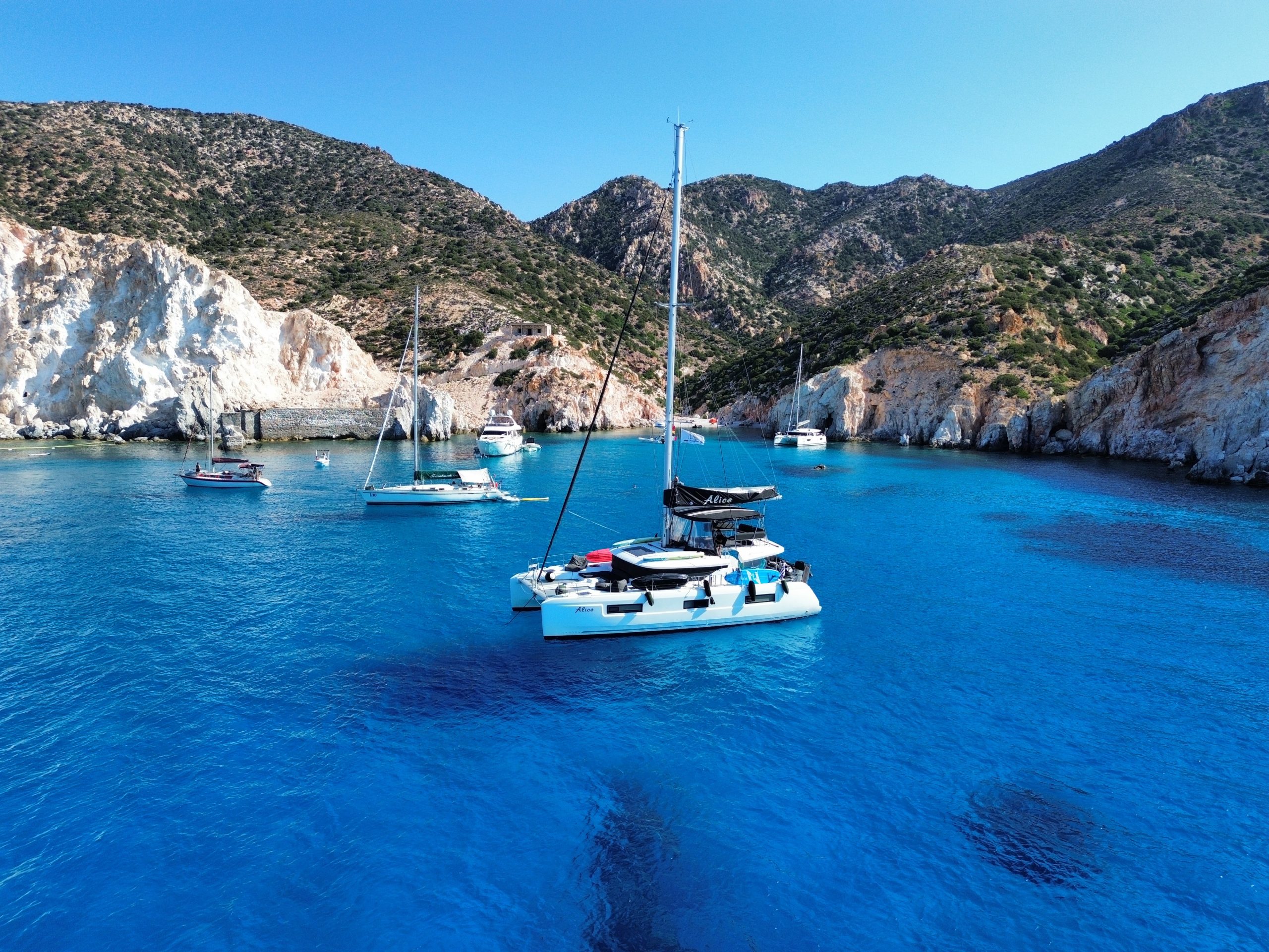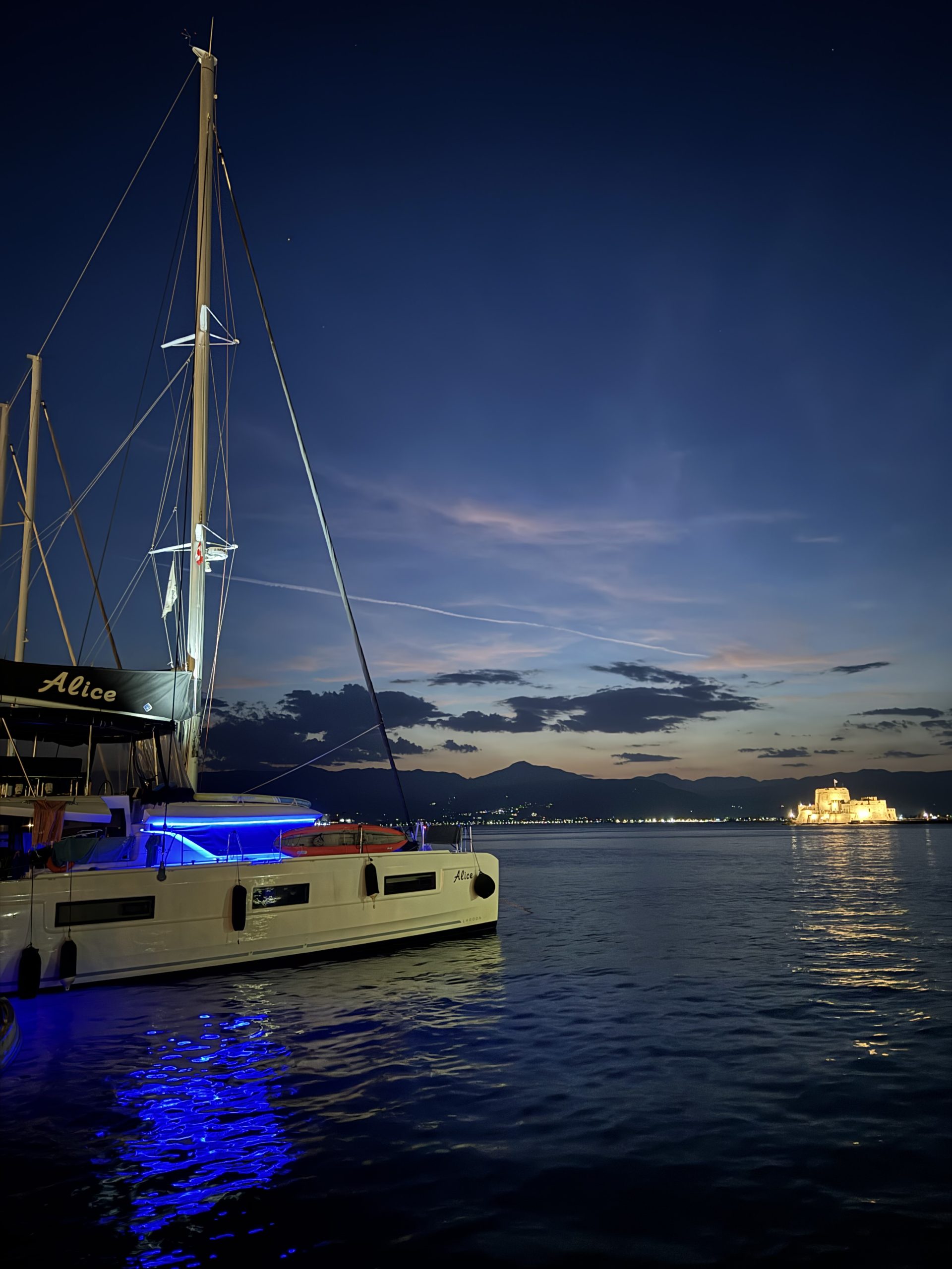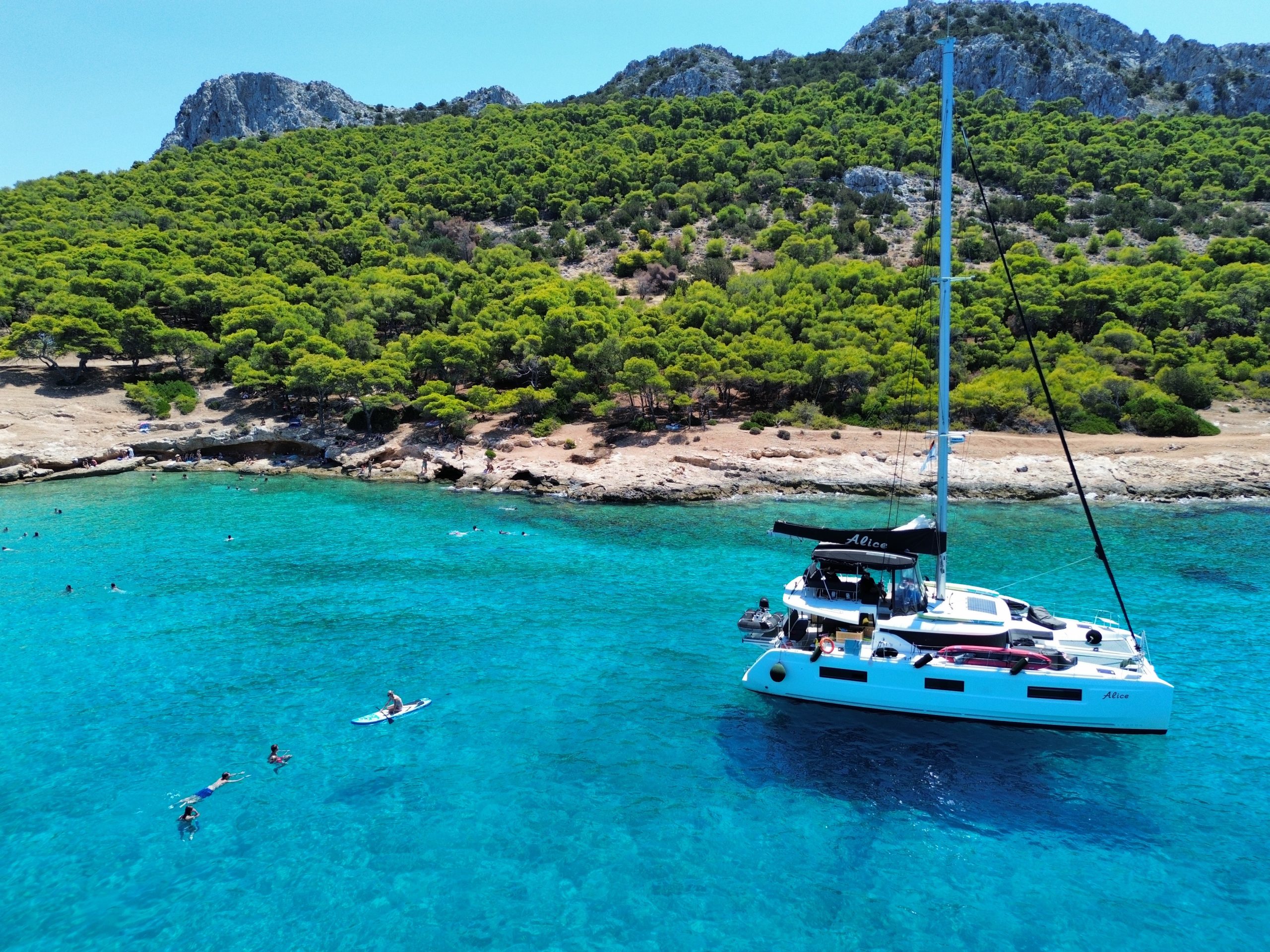 Embark on an Exclusive Journey Aboard the Lagoon 46 ‘ALICE’ Step aboard ALICE, a distinguished Lagoon 46 yacht, originally built in 2020 and fully refitted in 2025. As one of the finest vessels in our fleet, it offers an unparalleled level of luxury, featuring four exquisitely designed guest cabins and world-class amenities, ensuring a five-star experience on the water. Designed to deliver both comfort and high performance, this exceptional yacht boasts a spacious layout, remarkable cruising capabilities, and an elegant forward lounging area—perfect for relaxing while admiring the stunning landscapes of the Greek seas. The expansive flybridge, enhanced by a uniquely customized square sofa, offers uninterrupted panoramic views, creating an atmosphere of pure serenity. For adventure enthusiasts, ALICE offers an extensive array of water sports and recreational activities. Guests can relax in ultimate comfort, enjoying queen-size beds with premium-quality linens, individually controlled air conditioning in each cabin and the saloon, and spacious bathrooms with separate shower areas. Furthermore, a variety of themed evenings and exclusive onboard experiences, enhanced by the attentive service of two dedicated crew members, ensure an unforgettable and luxurious journey.Interior