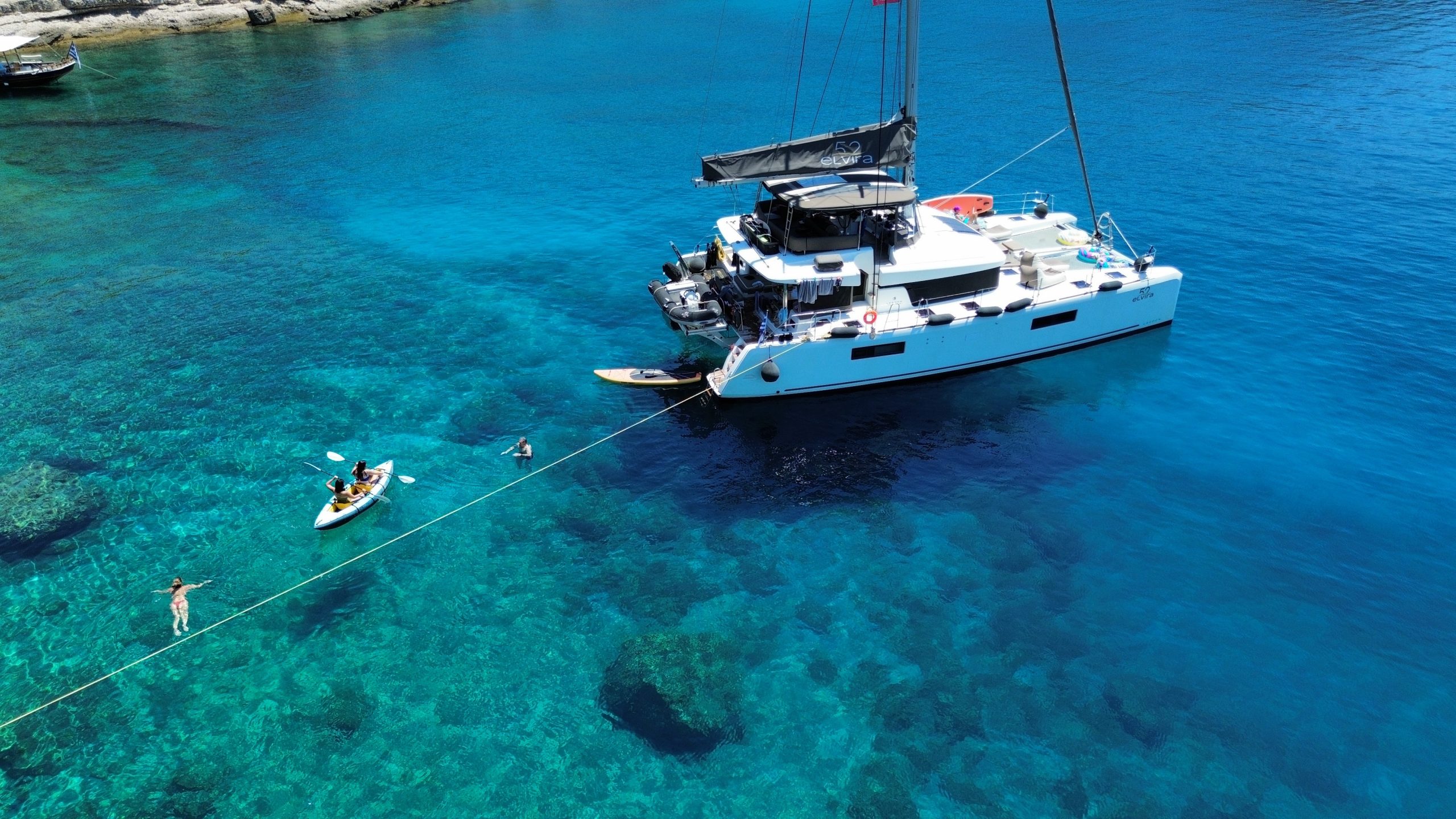 Embark on a truly unforgettable holiday aboard the Lagoon 52, the flagship of Lagoon’s prestigious catamaran fleet. Elvira 52 offers a modern design and is equipped with a variety of thoughtful extras that elevate your cruising experience. From spacious living areas to high-end amenities, this catamaran ensures both comfort and luxury throughout your journey. Whether you’re looking to relax or explore, Elvira 52 provides the perfect setting for a memorable adventure on the water.